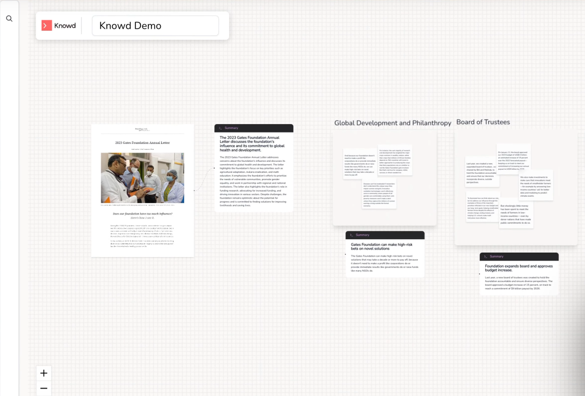 In my work at Knowd, I helped build a full-stack web application in JavaScript with React/NextJS, using NLP / AI technologies to power the knowledge extraction and insights functionalities.